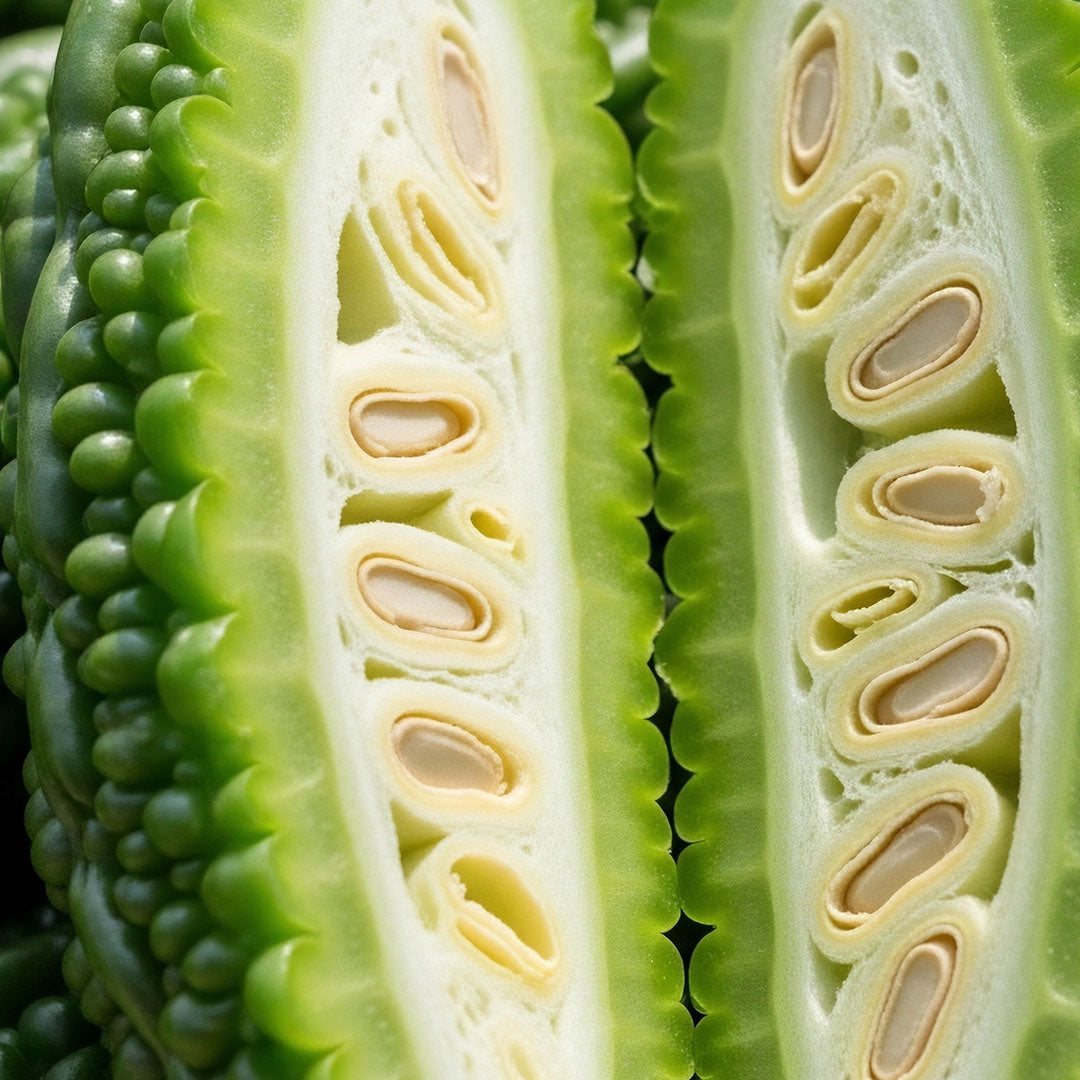 ist reich an Antioxidantien, Vitaminen und pflanzlichen Schutzstoffen ist. Sie hilft dabei, die Haut vor freien Radikalen und Umweltstress zu schützen, die eine der Hauptursachen für vorzeitige Hautalterung sind. Gleichzeitig wirkt Bittermelone ausgleichend und kann besonders bei unreiner oder gestresster Haut beruhigend unterstützen. Durch ihre klärenden Eigenschaften trägt sie dazu bei, das Hautbild frischer und ebenmäßiger wirken zu lassen.