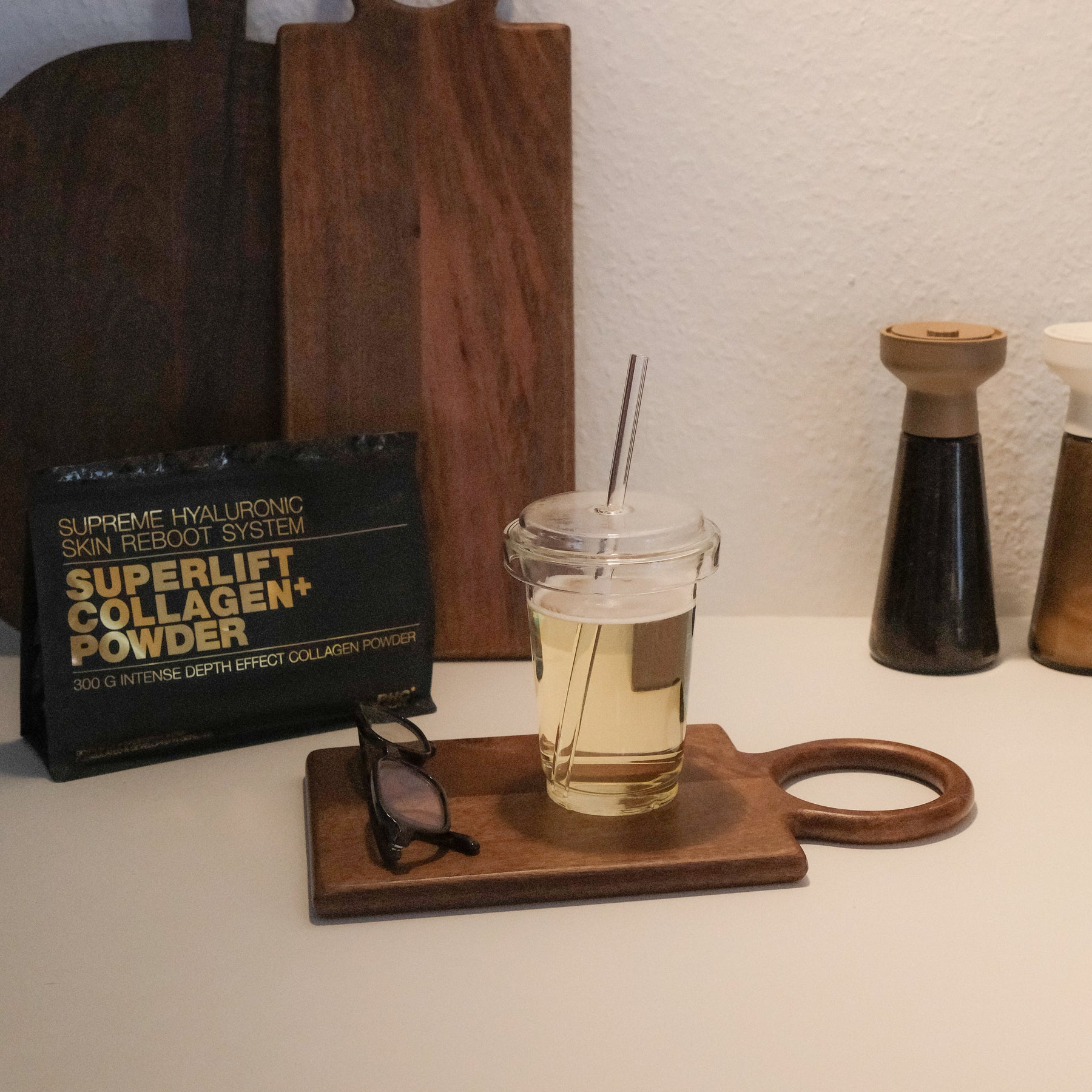 Das Superlift Collagen Powder ist deine ergänzende Beautykur von innen: Geschmack- und geruchsneutral, lässt es sich optimal in den Alltag integrieren – zu Shakes, Suppen oder Getränken. Die Kombination aus hydrolysiertem Kollagen, Hyaluronsäure und Vitamin C stärkt die Hautstruktur, erhöht die Hautfeuchtigkeit und mildert die sichtbaren Anzeichen der Hautalterung.